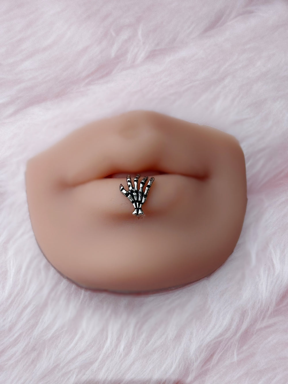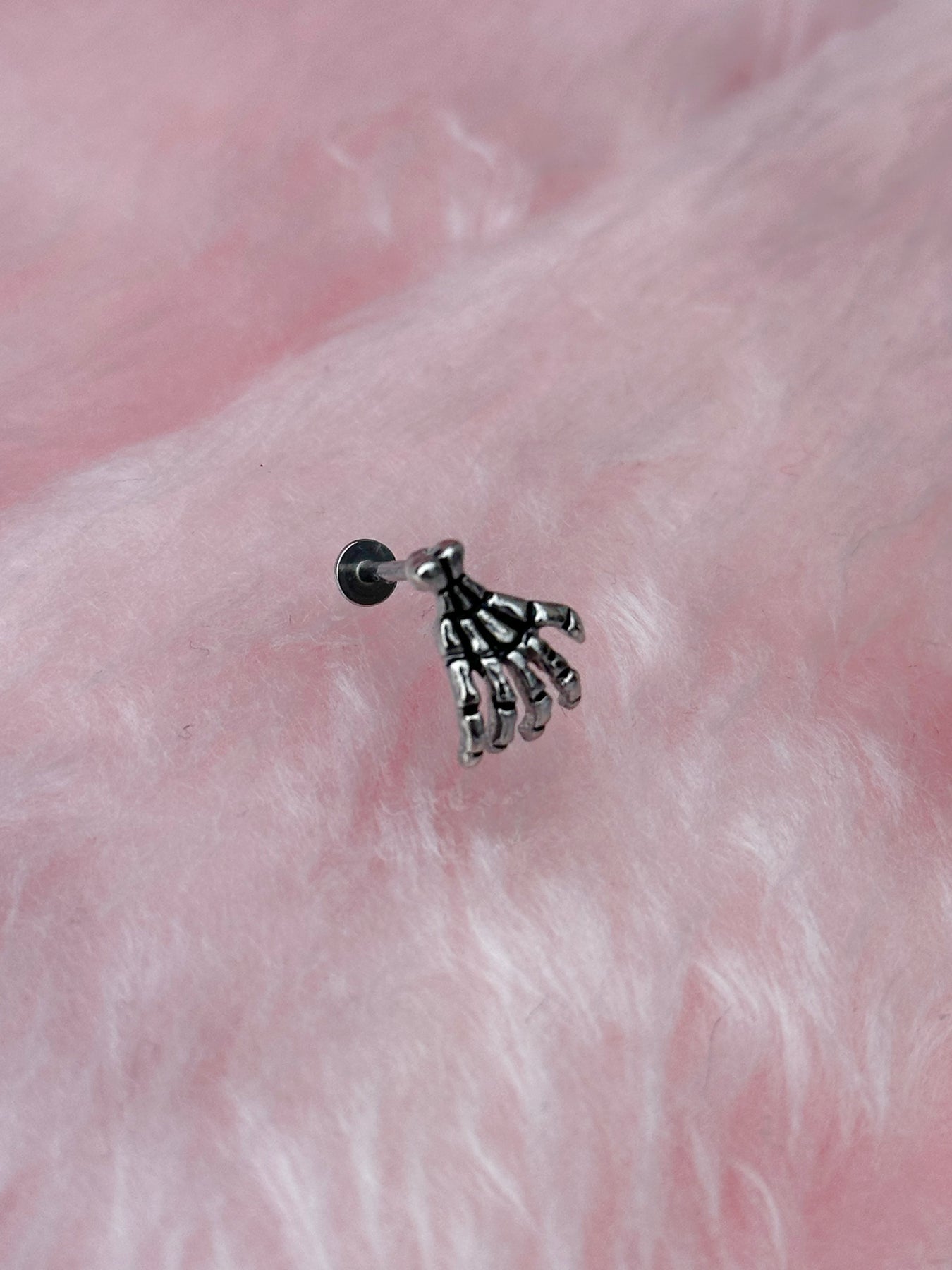 Add bold detail to your piercings with the **Skull Hand Flat Back Barbell** — designed for both comfort and statement style.