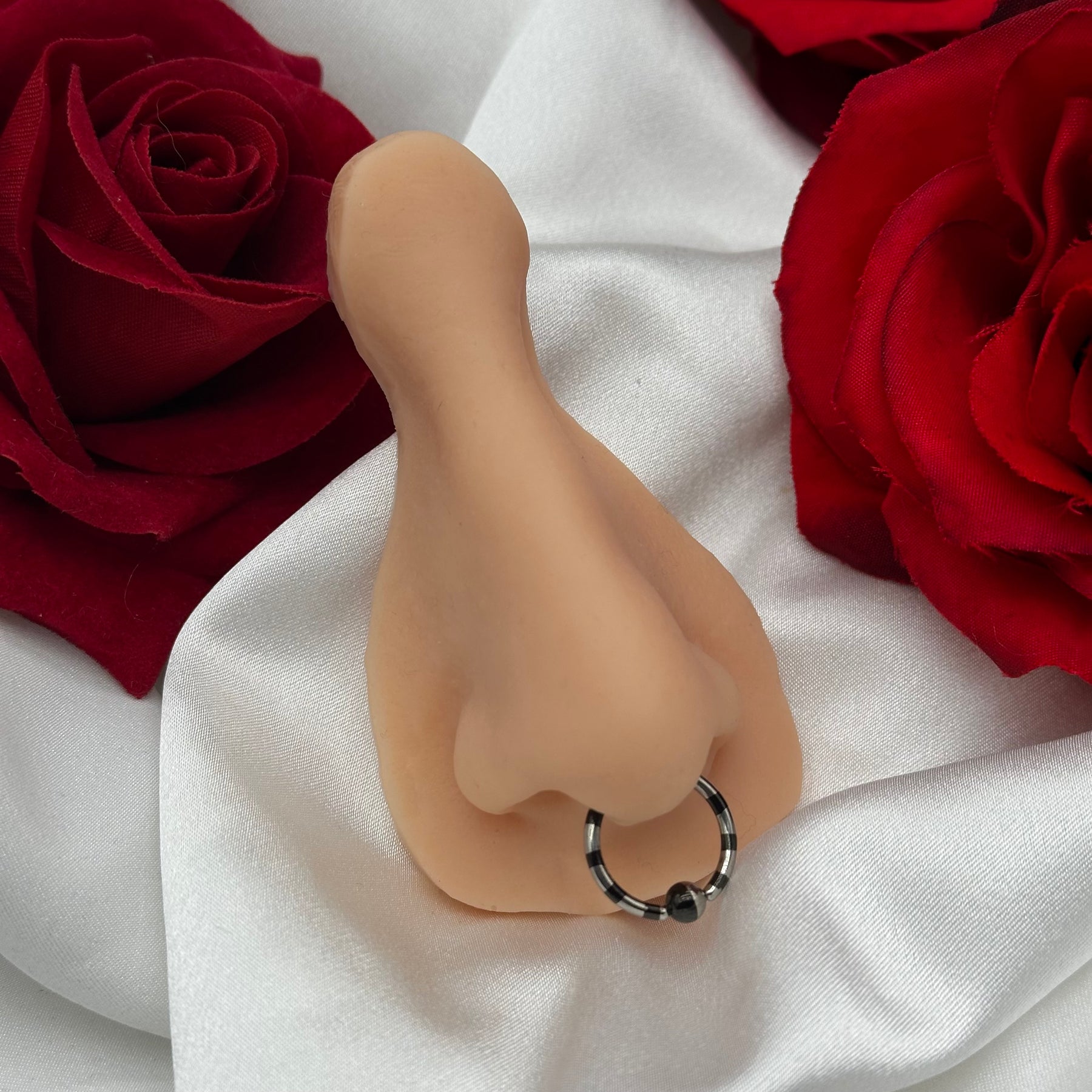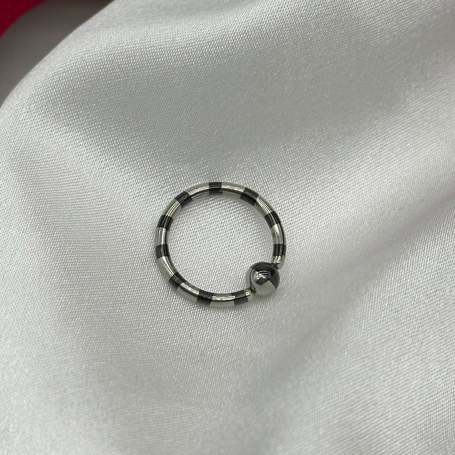 This steel & black BCR is made from high-quality surgical steel that is PVD plated for durability. The 1.6(14GA) ring comes with a 4mm ball and is suitable for fully healed piercings. With its versatile design, it can be worn in multiple different ways for an enhanced look.