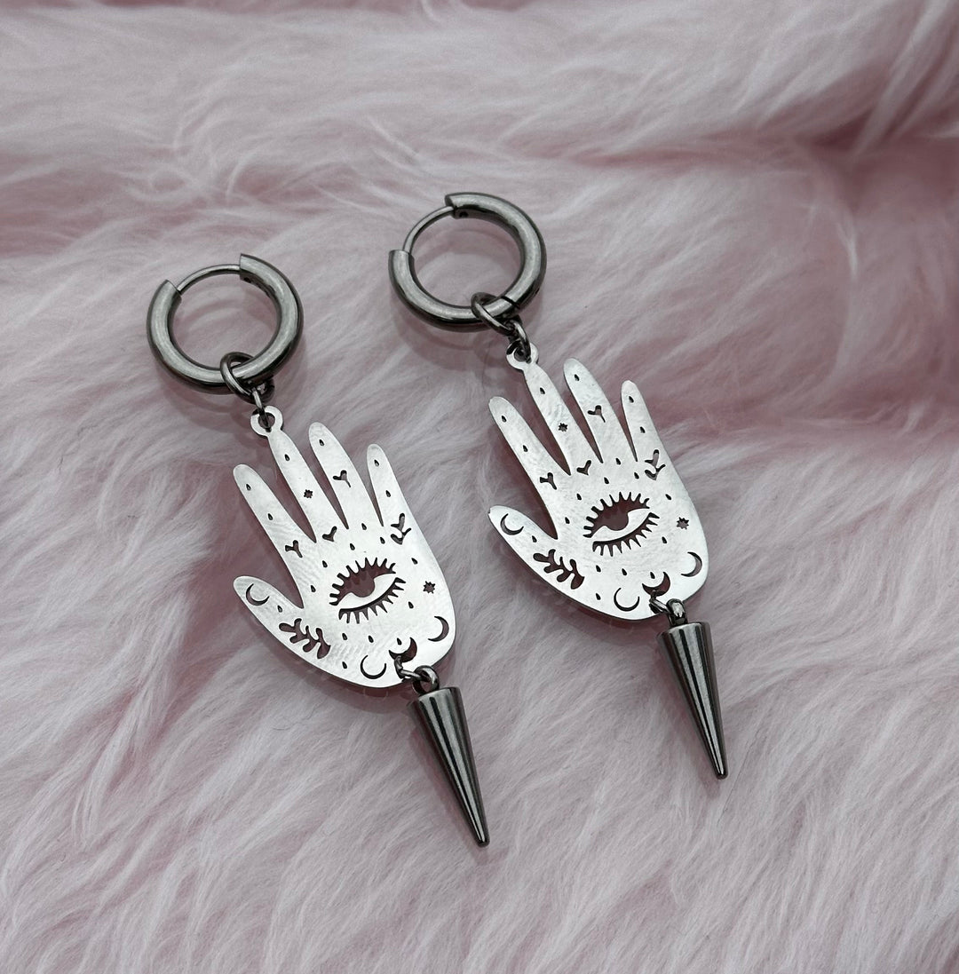 ALL SEEING EYE SPIKE HOOP EARRINGS