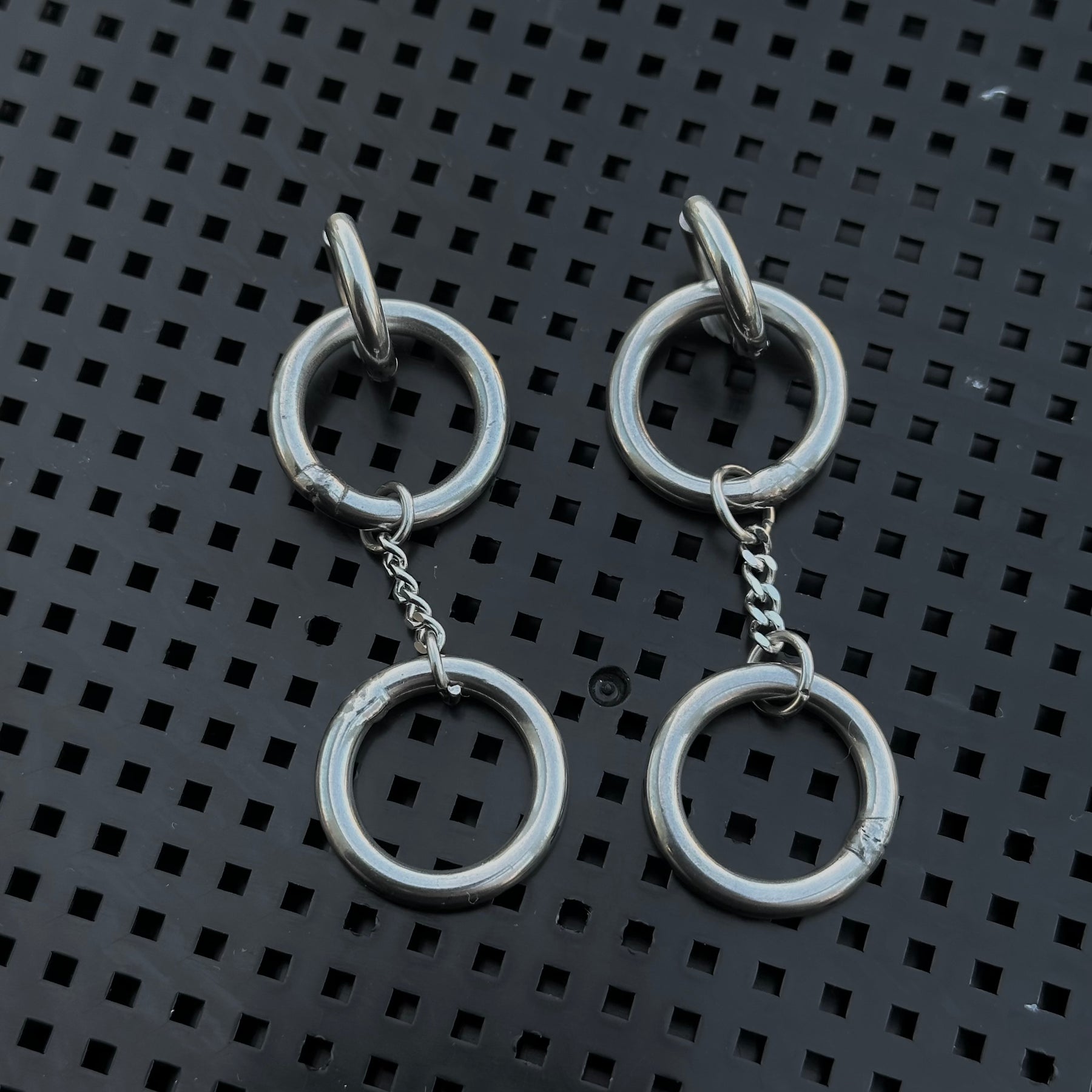 Our chained o ring hoops are our classic lightweight industrial style earrings that are created to make a statement! The hoops are made from 304 stainless steel material and the o rings are made from metal. They’re a unisex earring that are sold as a pair.