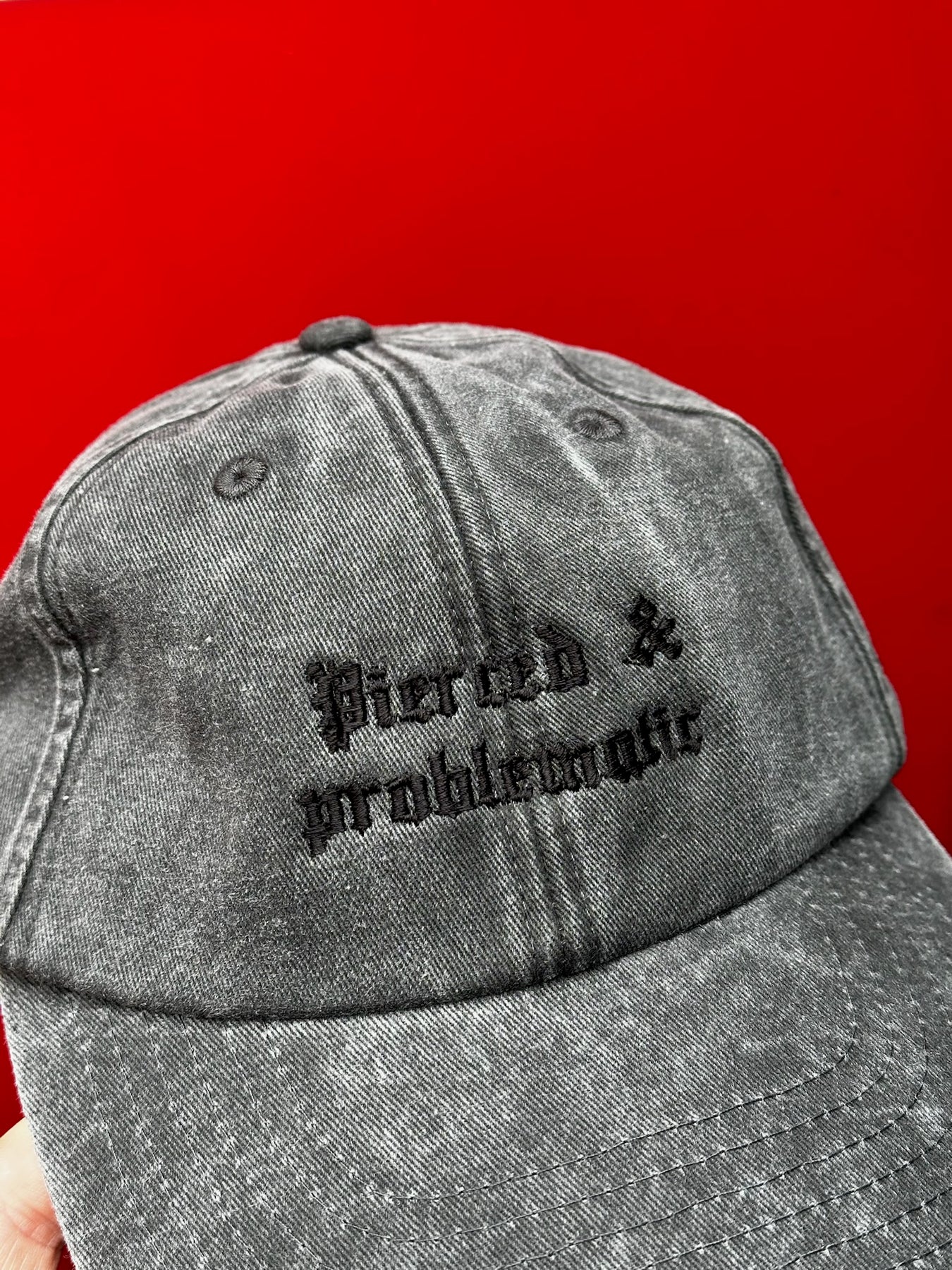 PIERCED & PROBLEMATIC EMBROIDERED BASEBALL CAP
