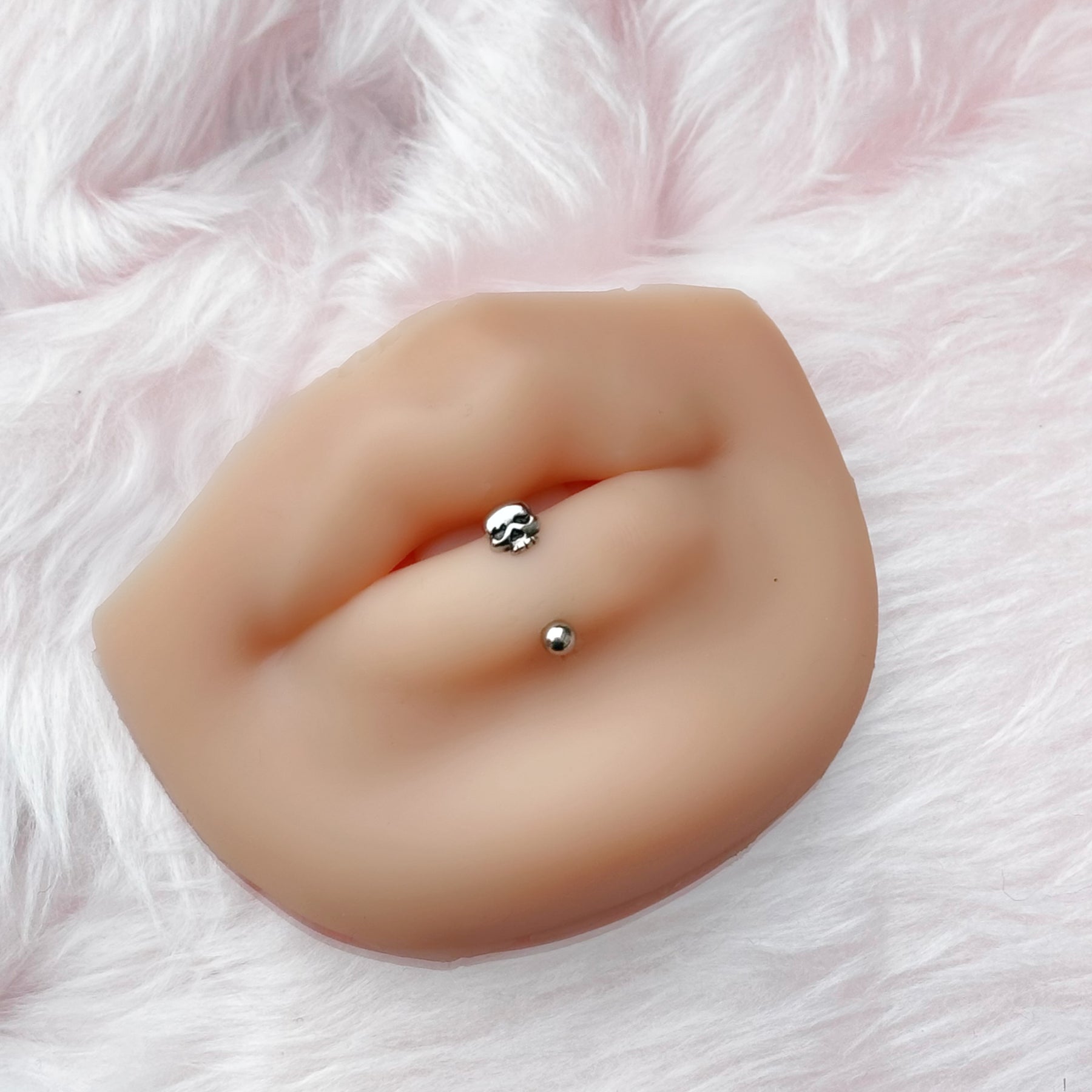 This single skull curved bar is crafted from 316L surgical steel, ensuring durability and suitability for healed piercings. With a 1.2mm bar thickness and 8mm length, it is versatile and can be worn as an eyebrow, vertical labret, or rook bar. Sold individually.