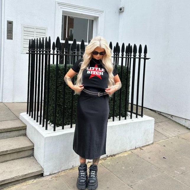 Add bold, minimalist flair to your everyday look with the Little B*Tch Crop T-Shirt. Built With Intention
