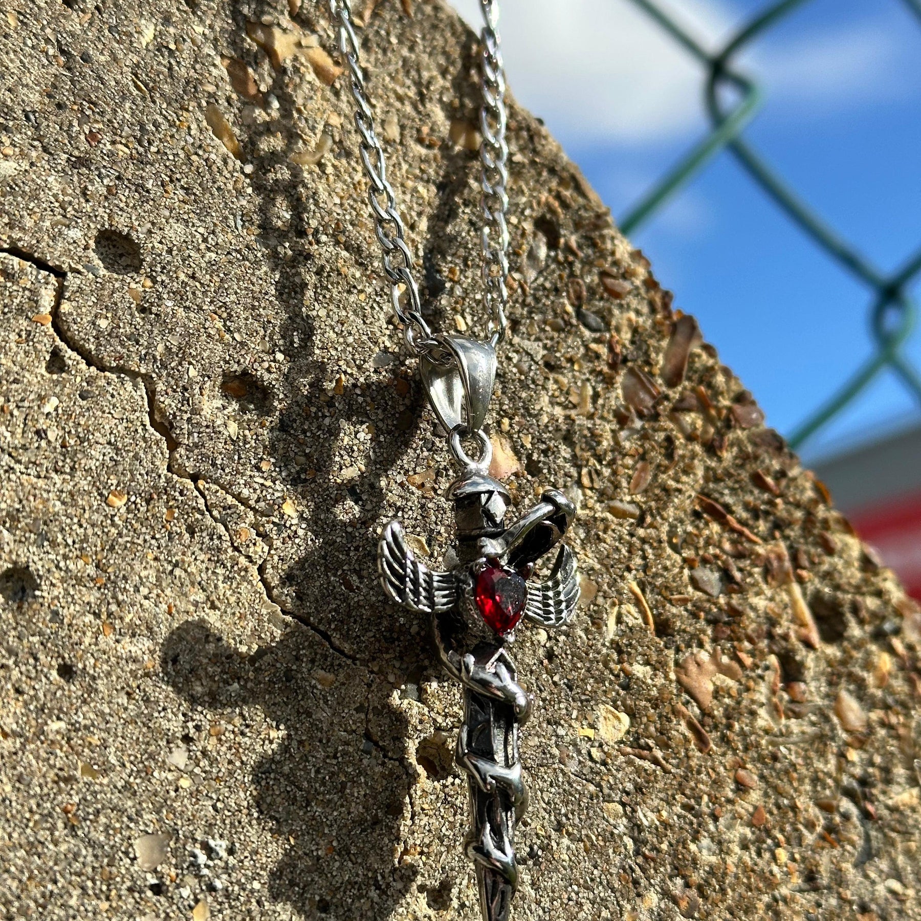 Turn heads with the **Snake Dagger Necklace** — a bold, alternative piece that elevates any outfit.